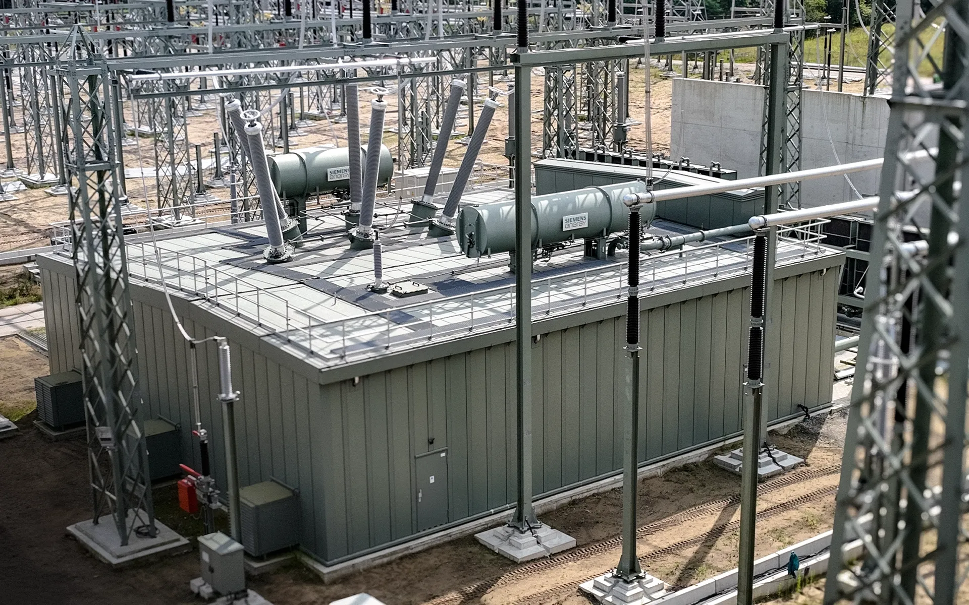 Im norddeutschen Lingen-Hanekenfähr baut der Übertragungsnetzbetreiber Amprion bis 2029 den leistungsstärksten Netzknoten Deutschlands. Dieser tonnenschwere Phasenschiebertransformator ist einer von zweien, die für die Energiewende künftig eine entscheidende Rolle spielen.