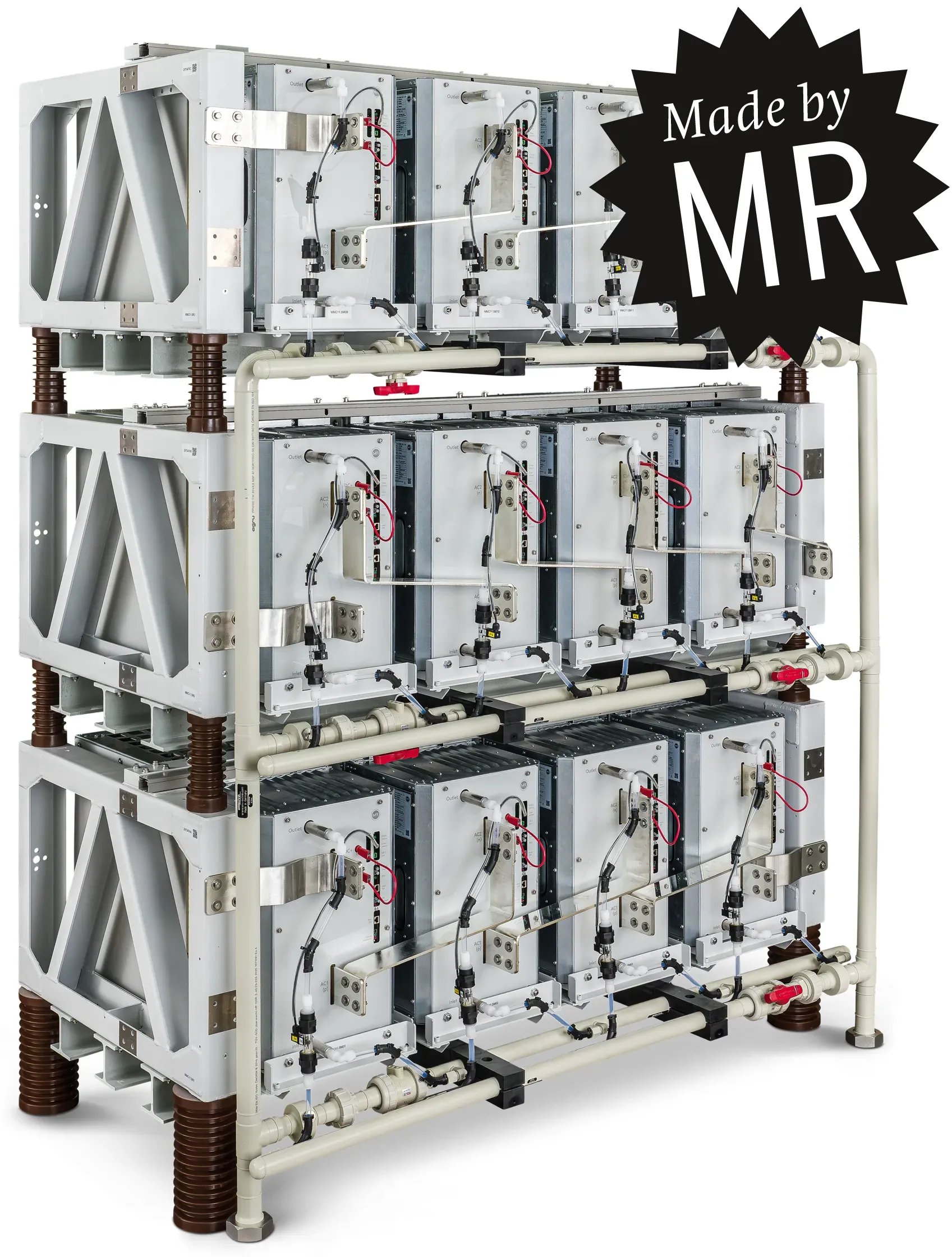The power-electronic components in the MMC generate heat loss. To protect the sensitive technology from overheating, MR relies on water cooling, which has a significantly higher cooling capacity than air. This allows the power electronics to be packed more densely, which further reduces the space required by the system. A stable operating temperature also reduces the thermal load and thus extends the service life of the components.