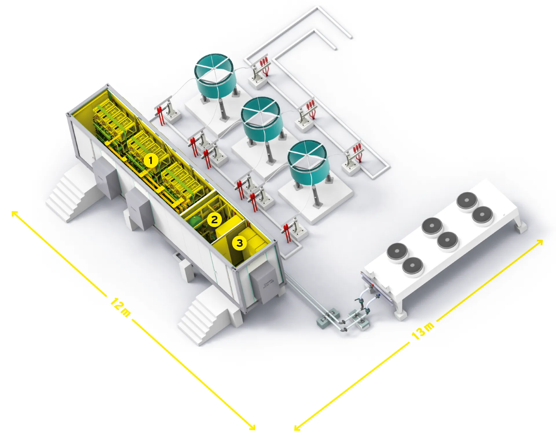 The system has a modular design and can be configured for a connection voltage of 6 kV to 33 kV and a power range of 18 to 100 MVAR. This makes the system suitable for various industrial applications and allows it to be adapted and expanded at any time. Thanks to the container solution, the system is also mobile and can be rebuilt at another location if necessary.