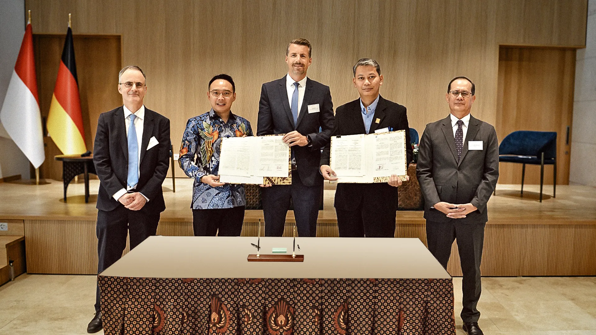 Indone­sia plans to expand its ener­gy capac­i­ty by 69.5 gigawatts by 2034, with around 60 per­cent com­ing from renew­able sources. With the Just Ener­gy Tran­si­tion Part­ner­ship (JETP), the coun­try is pur­su­ing an ambi­tious course to decar­bonize its ener­gy sec­tor. The ini­tia­tive, which was launched in 2022 as part of the G20 sum­mit, brings togeth­er inter­na­tion­al sup­port, includ­ing from Ger­many, to achieve these goals. In Sep­tem­ber, the Indone­sia-Europe Busi­ness Forum (IEBF) 2025 was held in Berlin. With­in this frame­work, Rein­hausen signed a mem­o­ran­dum of under­stand­ing (MoU) with the state-owned ener­gy sup­pli­er PT PLN. The agree­ment marks the begin­ning of deep­er coop­er­a­tion in the fol­low­ing areas:
