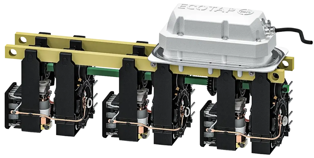 This is exactly where ECOTAP® VPD® comes in: a compact, regulated on-load tap-changer (OLTC) located directly in the transformer between the inverter and the medium-voltage grid or between the inverter and the power transformer. Its task is as simple as it is effective: the voltage on the low-voltage side is stabilized and the inverters can maintain their rated power even when the medium-voltage grid is “wiggling.” The inverter is effectively decoupled from the fluctuations on the grid side, and a more stable voltage prevails at the inverter level, which can be regulated within a range of plus/minus two percent. Since inverters are certified for at least plus/minus ten percent, the operating point can be adjusted dynamically.