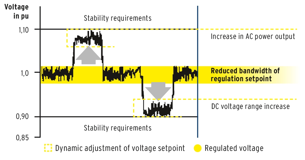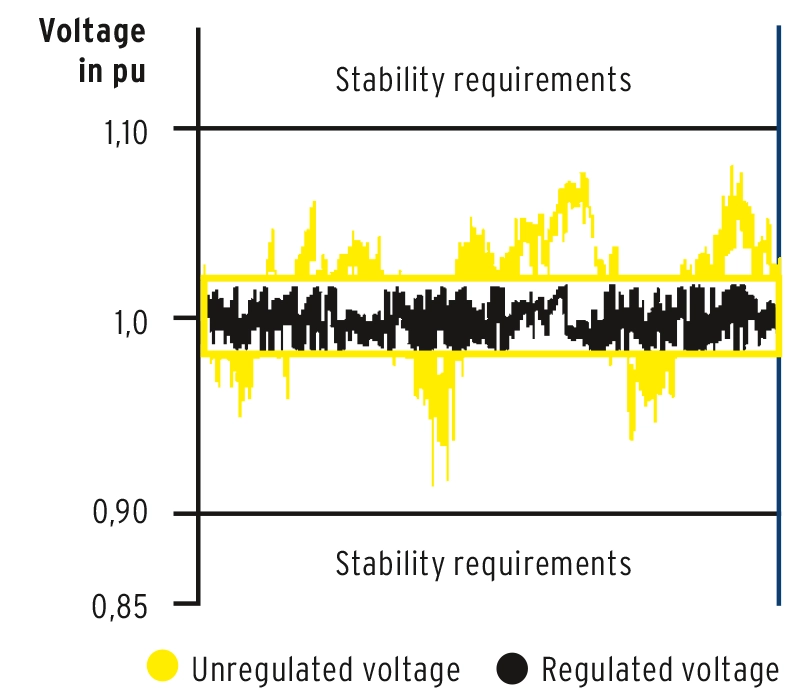 A key issue is the dimensioning of the inverters, especially with regard to voltage ranges, as well as active and reactive power capacity at the grid connection point. OLTCs in inverter station transformers can reduce the need for additional reactive power compensation; in power transformers, they are often required by grid codes to regulate voltage. Nevertheless, OLTCs alone are not sufficient to satisfy all power quality requirements.